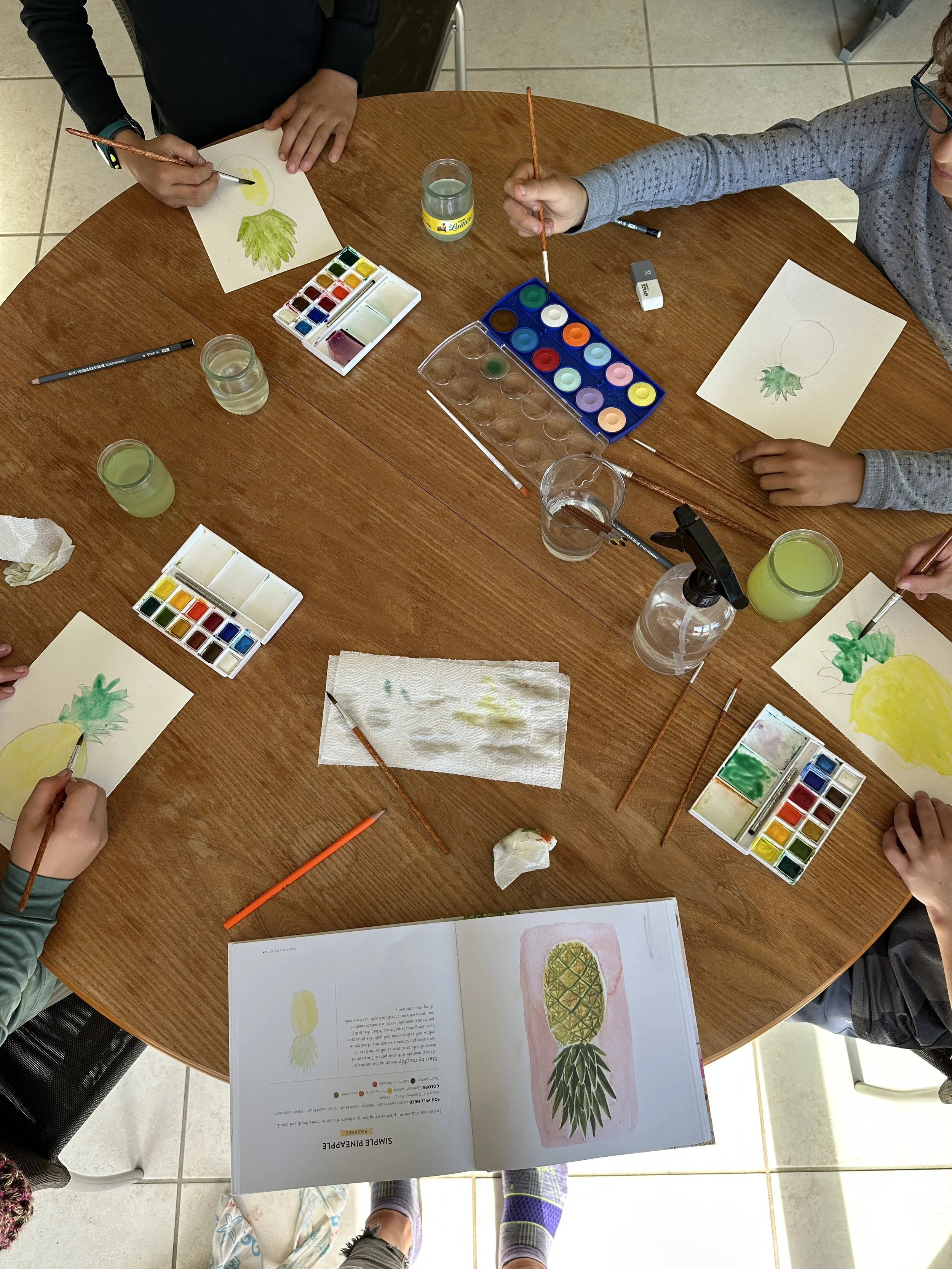 02. Weekly art history and art technique lessons given in English. We may watch or read stories together to learn more about artists or our art subjects